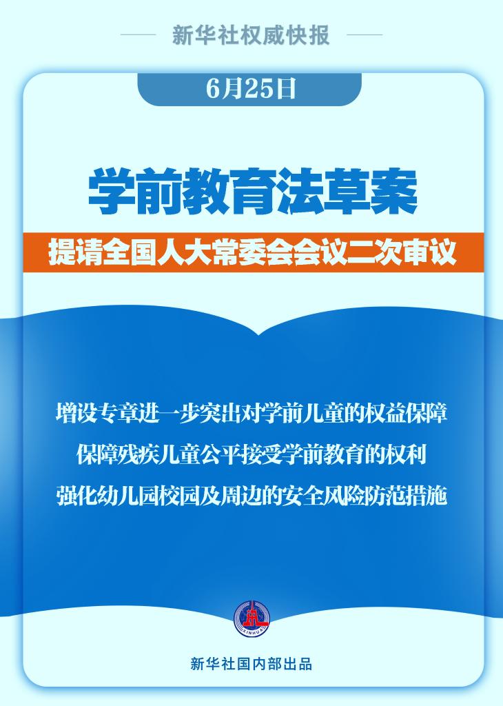 学前教育法草案6月25日提请全国人大常委会会议二次审议。